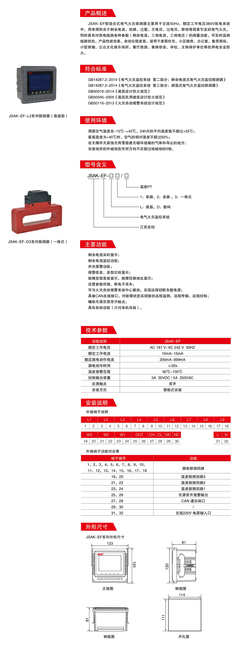 JSAK-EF-L2 電氣火災探測器(液晶式)